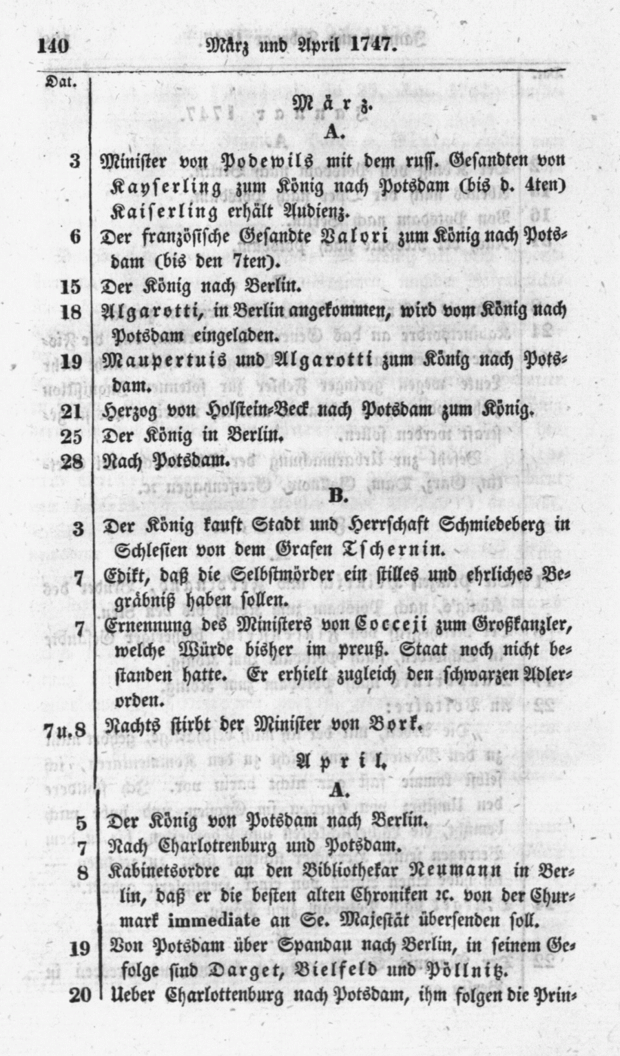 Ernennung des Ministers von Cocceji zum Großkanzler, welche Würde bisher im preuß. Staat noch nicht bestanden hatte. Er erhielt zugleich den schwarzen Adlerorden.