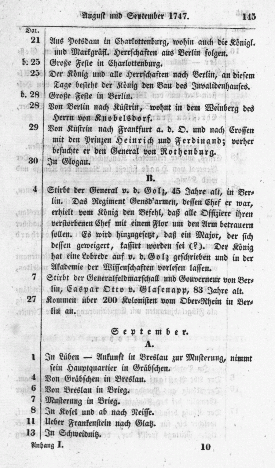 Karl Heinrich Siegfried Rödenbeck: Tagebuch oder Geschichtskalender aus Friedrich's des Großen Regentenleben (1740 - 1786). Bd. 1