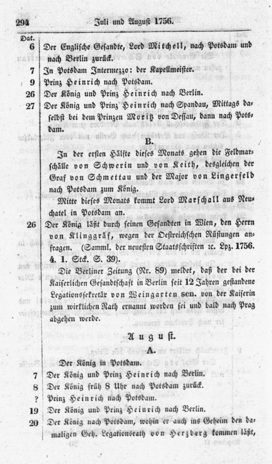 Der König nach Potsdam, wohin er auch ins Geheim den damaligen Geh. Legationsrath) von Herzberg kommen läßt,