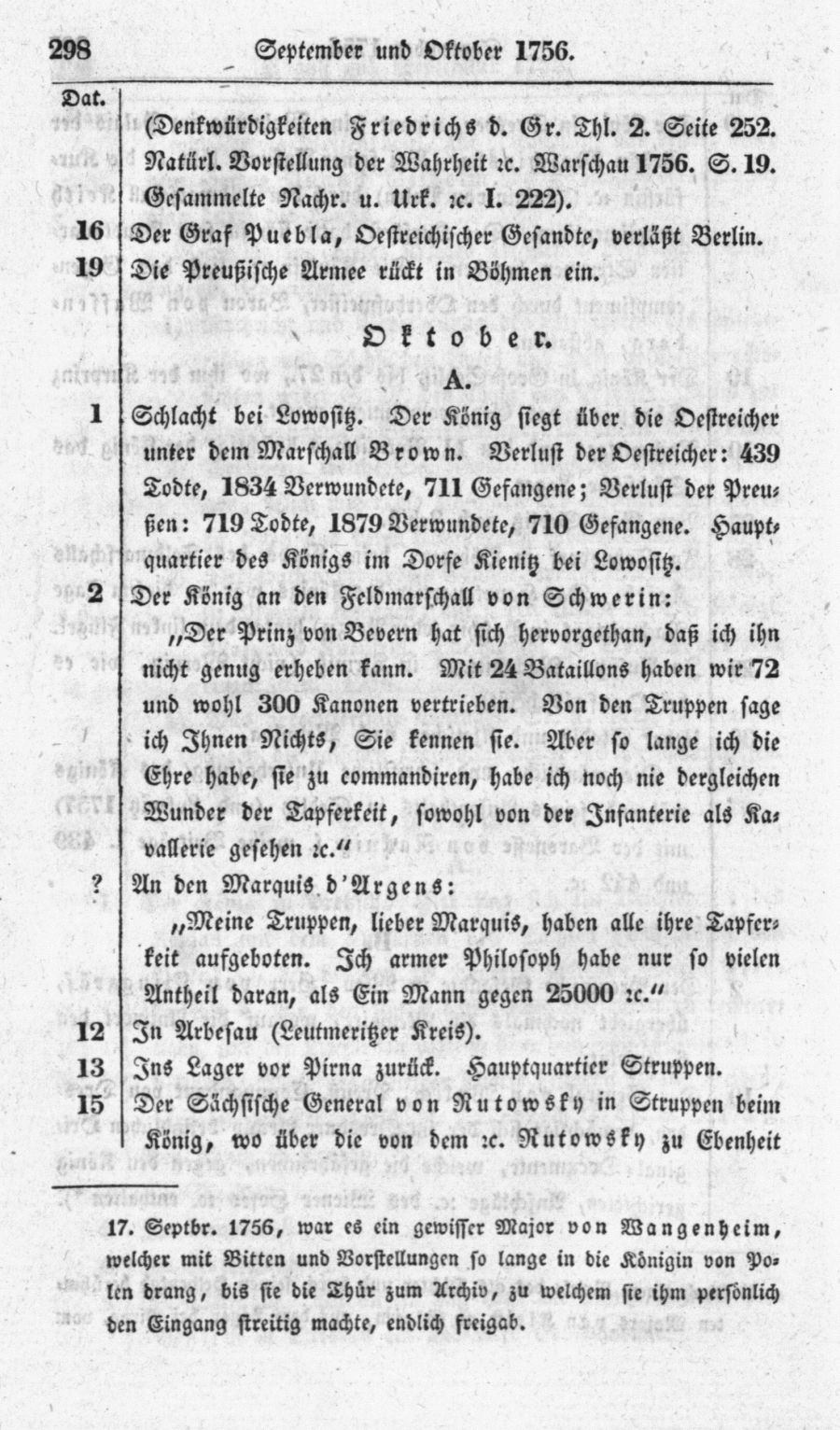 <298> (Denkwürdigkeiten Friedrichs d. Gr. Thl. 2. Seite 252. Natürl. Vorstellung der Wahrheit etc. Warschau 1756. S. 19. Gesammelte Nachr. u. Urk. etc. I. 222).