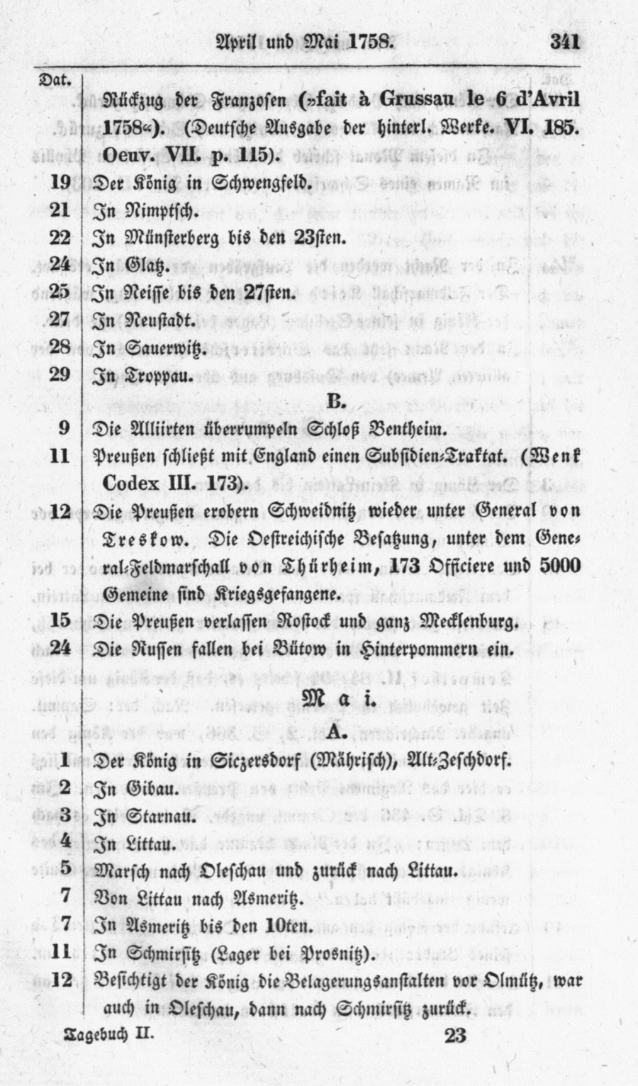 Karl Heinrich Siegfried Rödenbeck: Tagebuch oder Geschichtskalender aus Friedrich's des Großen Regentenleben (1740 - 1786). Bd. 1