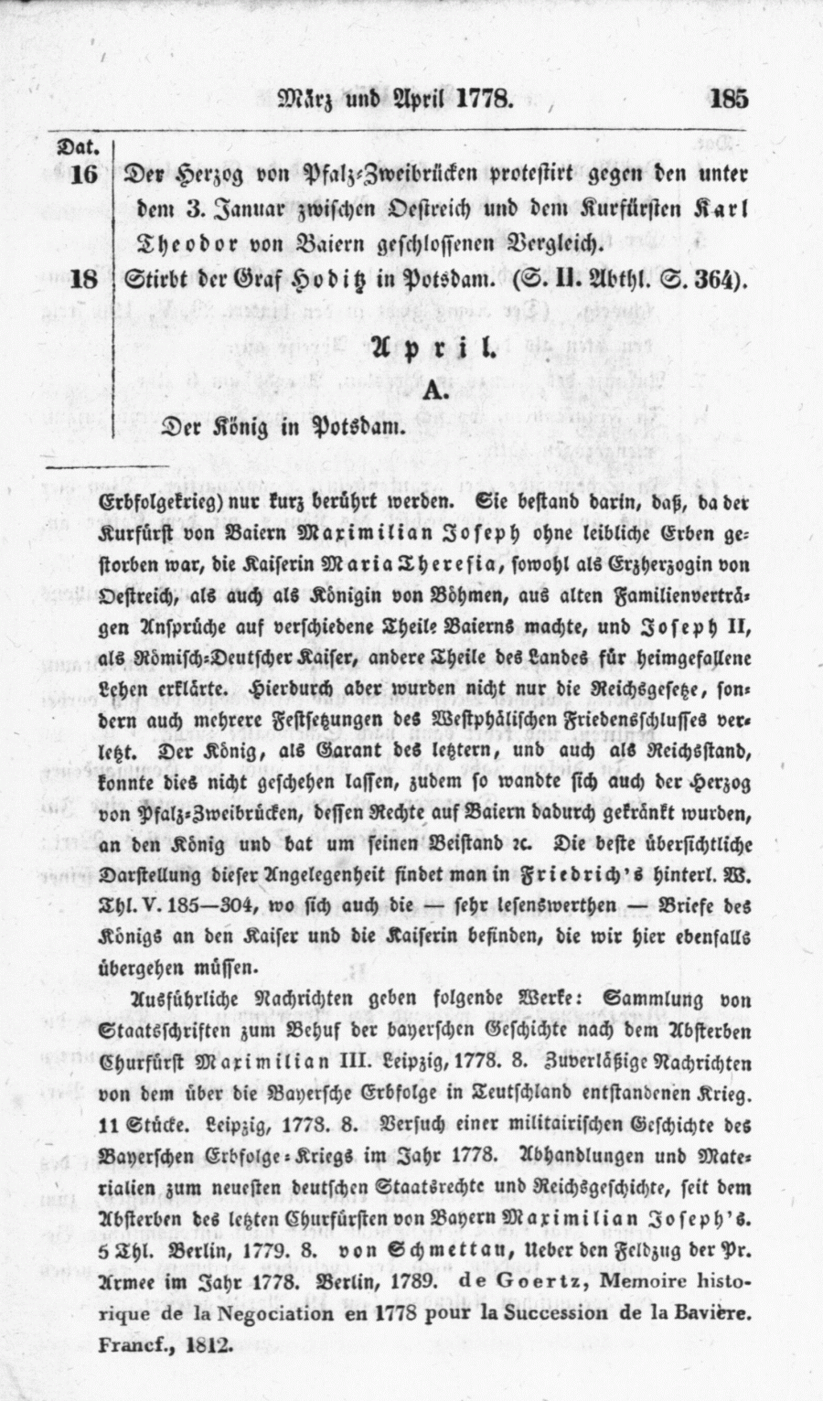 Stirbt der Graf Hoditz in Potsdam. (S. II. Abthl. S. 364).