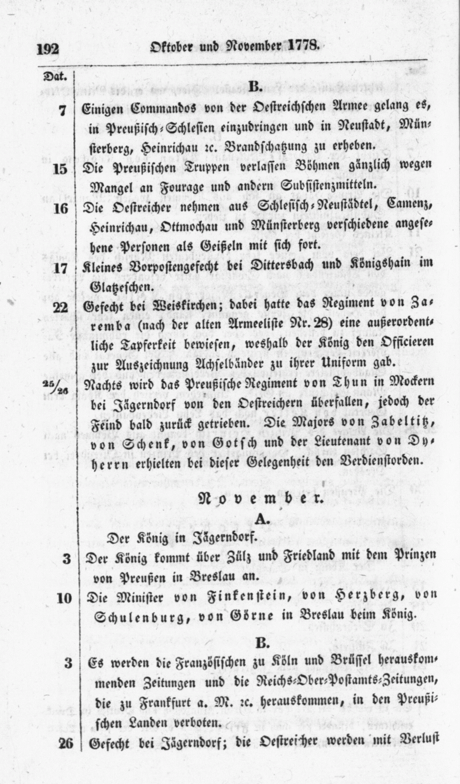 Gefecht bei Weiskirchen; dabei hatte das Regiment von Zaremba (nach der alten Armeeliste Nr. 28) eine außerordentliche Tapferkeit bewiesen, weshalb der König den Officieren zur Auszeichnung Achselbänder zu ihrer Uniform gab.