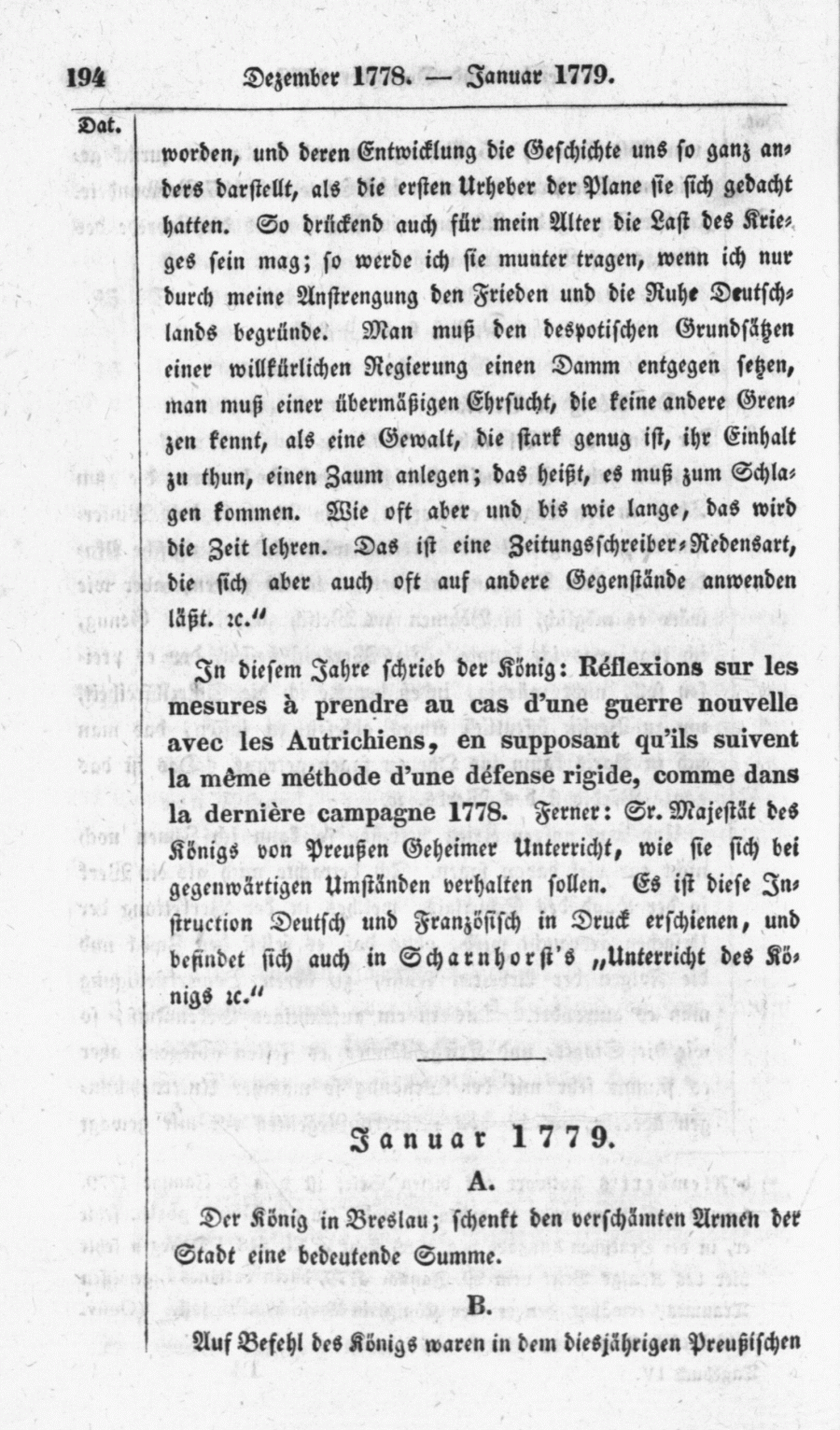 In diesem Jahre schrieb der König : Réflection sur les mesures à prendre au cas d'une guerre novelle avec les Autrichiens, en supposant qu'ils suivent la même méthode d'une défense rigide, comme dans la denière campagne 1778. Ferner : Sr. Majestät des Königs von Preußen Geheimer Unterricht, wie sie sich bei gegenwärtigen Umständen verhalten sollen. Es ist diese Instruction Deutsch und Französisch in Druck erschienen, und befindet sich auch in Scharnhorst's "Unterricht des Königs etc."