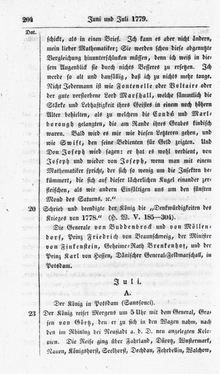 Schrieb und beendigte der König die "Denkwürdigkeiten des Krieges von 1778." (H. W. V. 185-304).