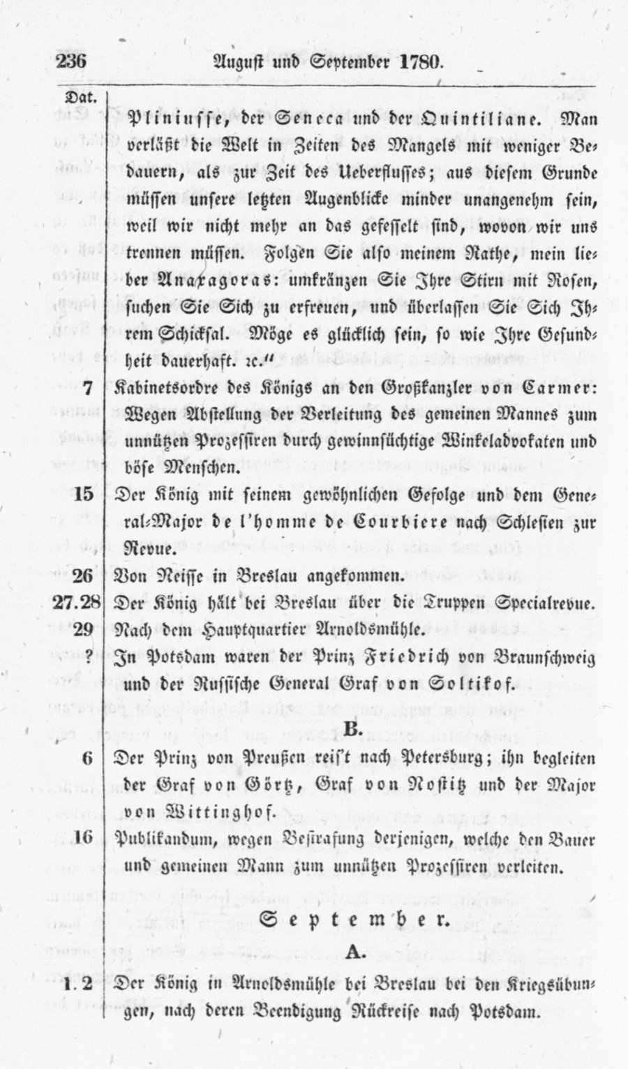 Der Prinz von Preußen reis't nach Petersburg; ihn begleiten der Graf von Görtz, Graf von Nostitz und der Major von Wittinghof.