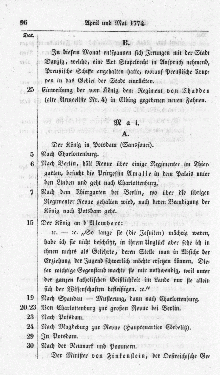 etc. - etc. "So lange sie (die Jesuiten) mächtig waren, habe ich sie nicht beschützt, in ihrem Unglück aber sehe ich in ihnen nichts als Gelehrte, deren Stelle man in Absicht der Erziehung der Jugend schwerlich möchte ersetzen können. Dieser wichtige Gegenstand machte sie mir nothwendig, weil unter der ganzen katholischen Geistlichkeit im Lande nur sie allein sich der Wissenschaften befleißigen. etc."