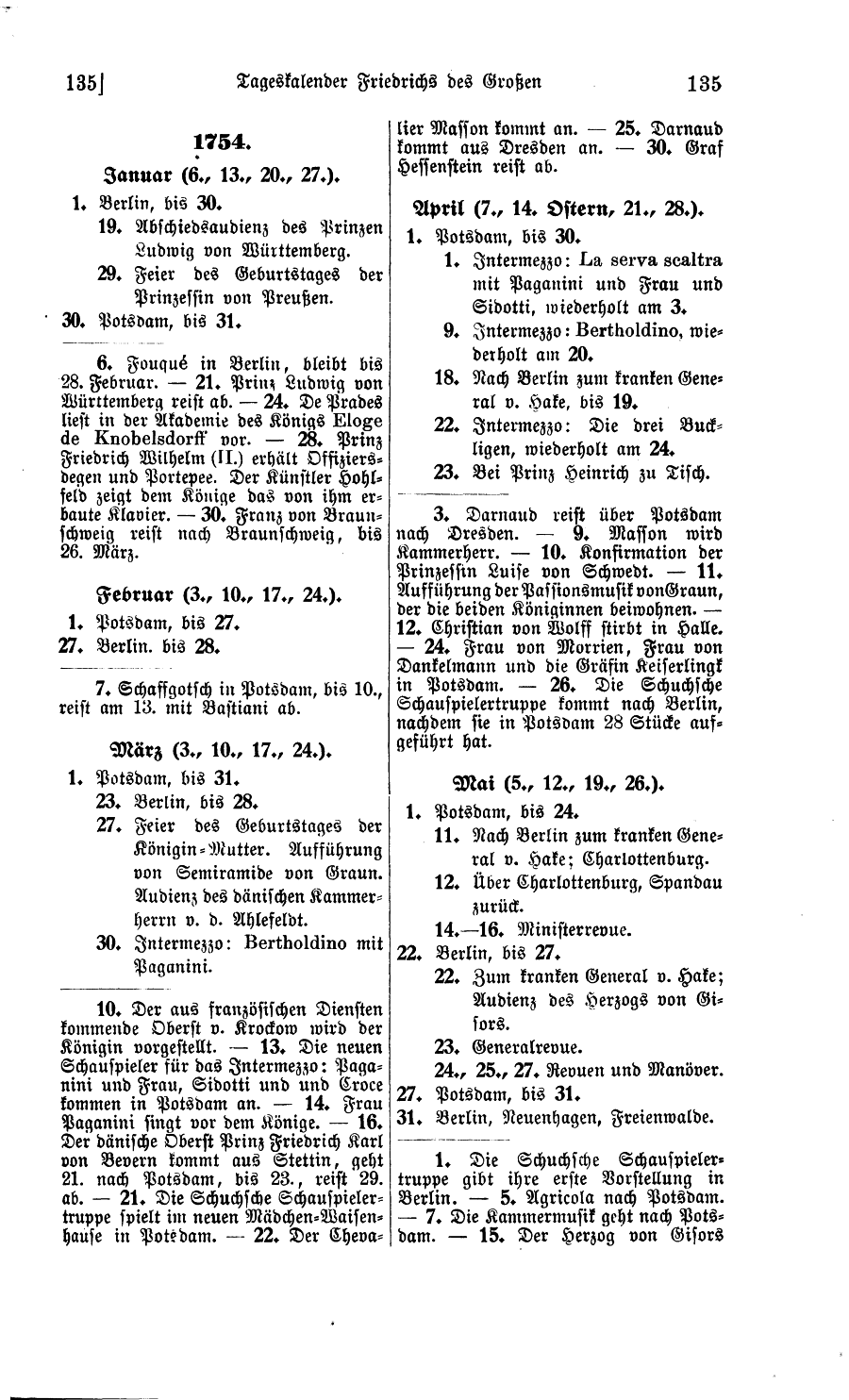 1. Die Schuchsche Schauspielertruppe gibt ihre erste Vorstellung in Berlin. - 5. Agricola nach Potsdam. - 7. Die Kammermusik geht nach Potsdam. - 15. Der Herzog von Gisors