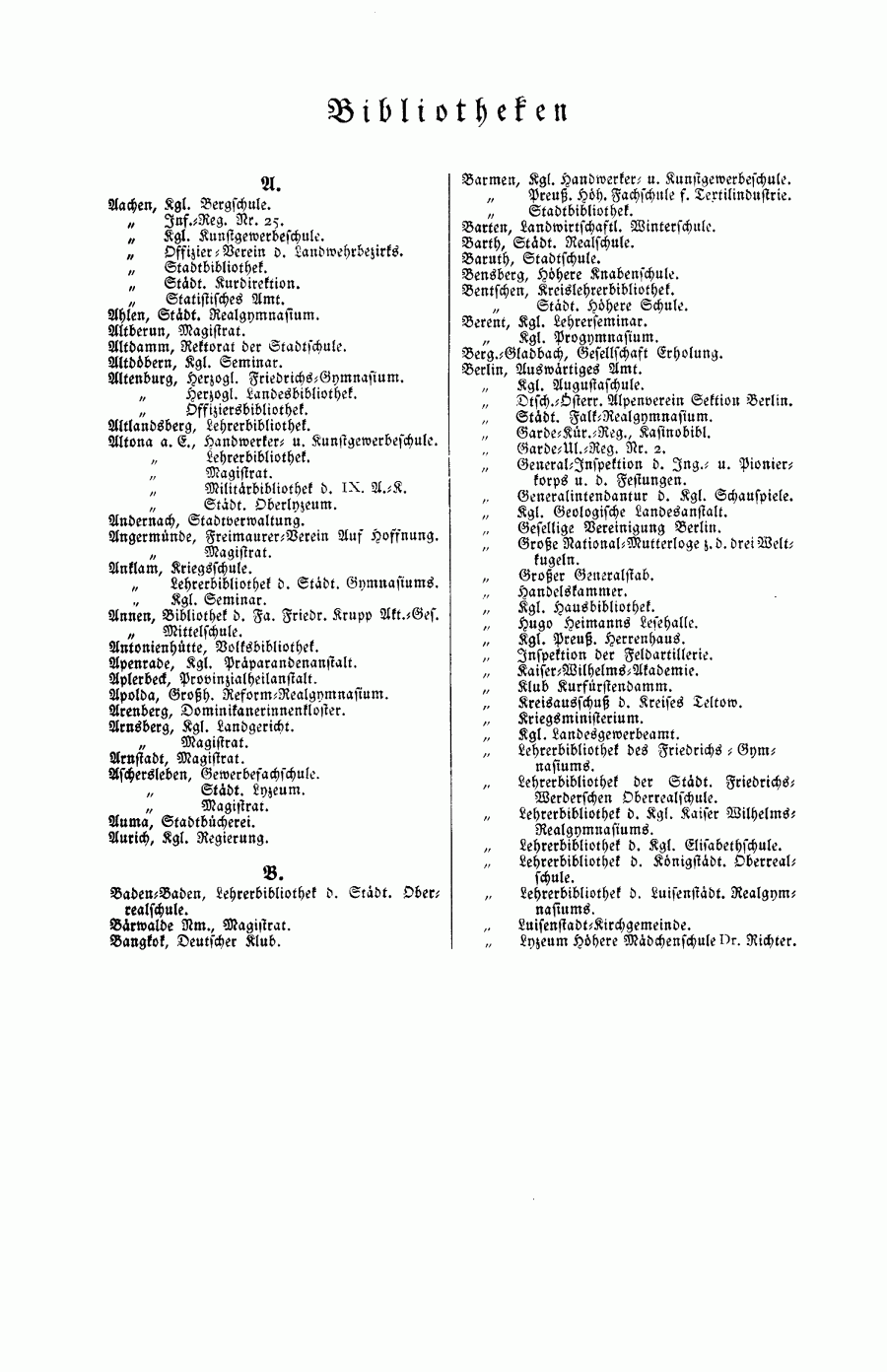- Berlin, Lehrerbibliothek d. Kgl. Elisabethschule.