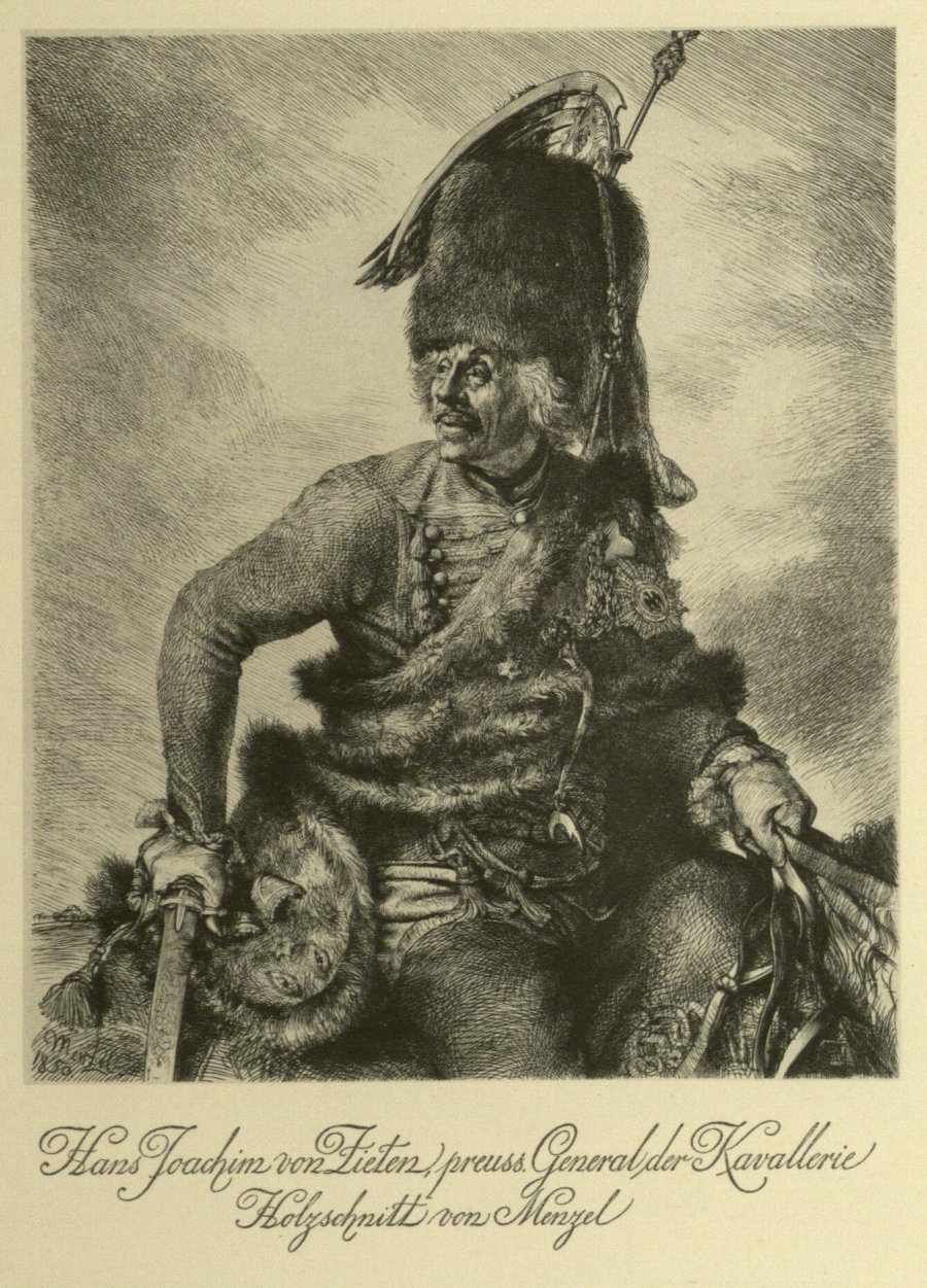Hans Joachim von Zielen, preußischer General der Kavallerie. Holzschnitt von Menzel.