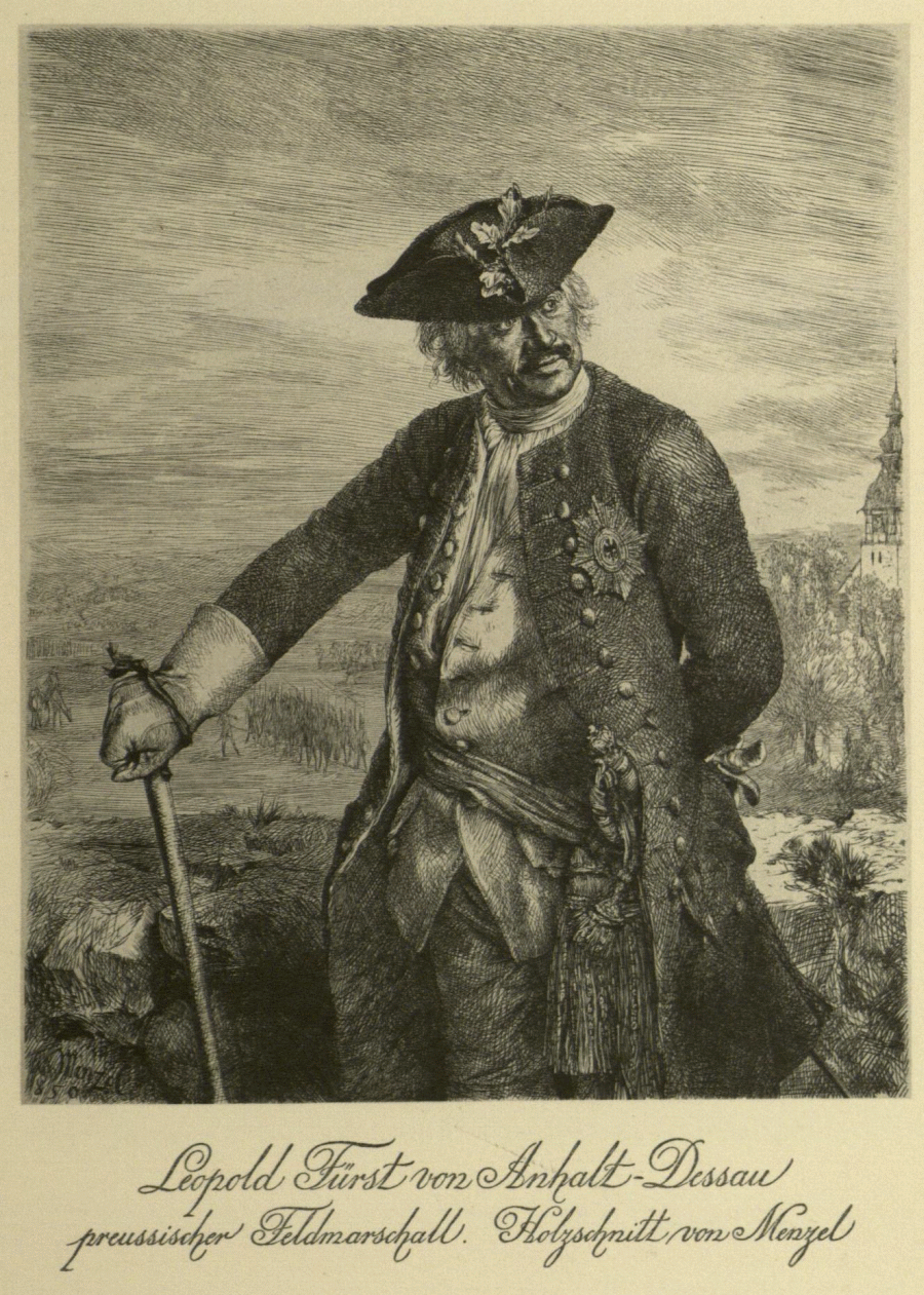 Leopold Fürst von Anhalt-Dessau, preußischer Feldmarschall. Holzschnitt von Menzel.