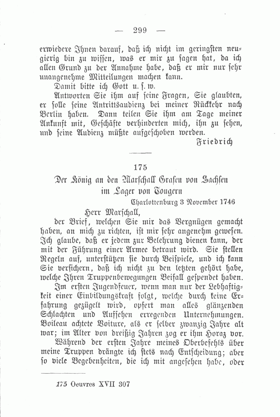 Der König an den Marschall von Sachsen 3 Nov. 1746