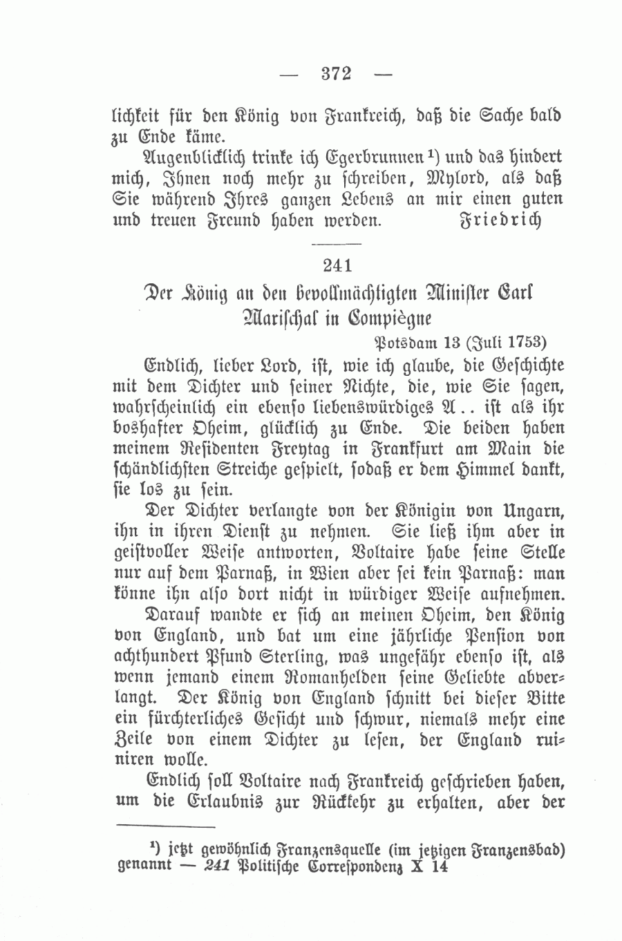 Der König an den Earl Marischal 13 Juli 1753