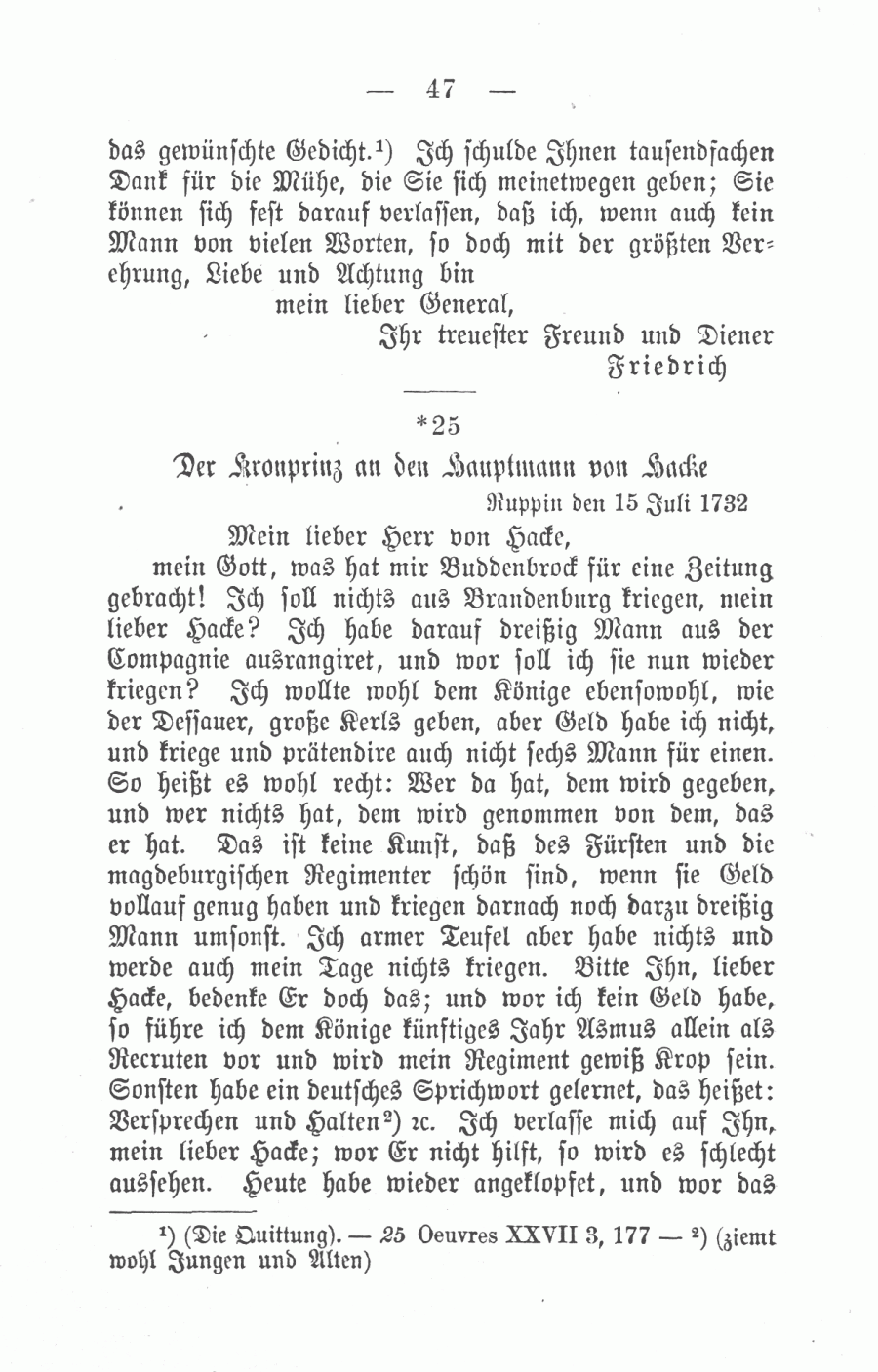 Der Kronprinz an den Hauptmann von Hacke 15 Juli 1732