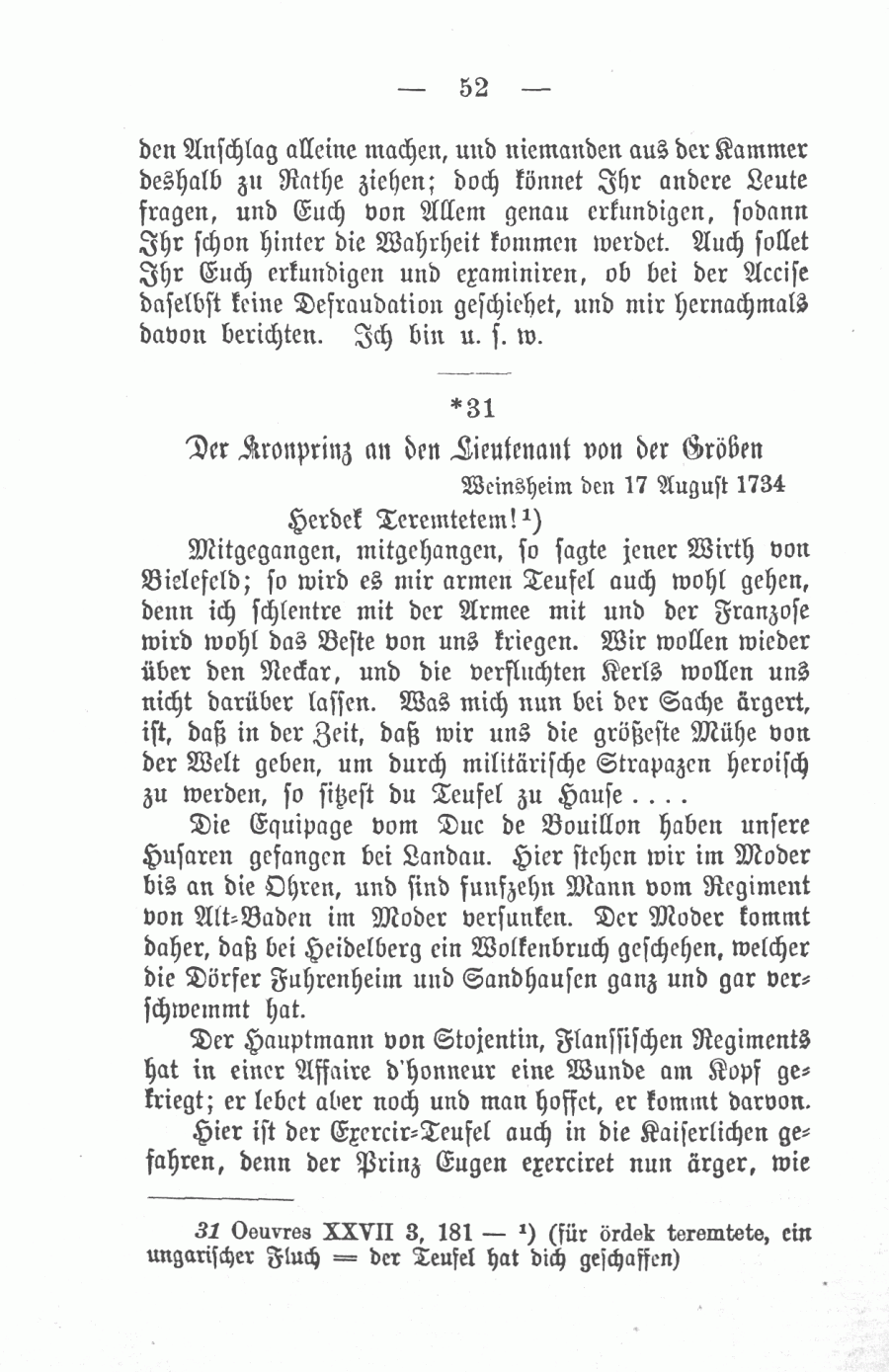 Der Kronprinz an den Lieutenant von der Gröben 17 Aug. 1734