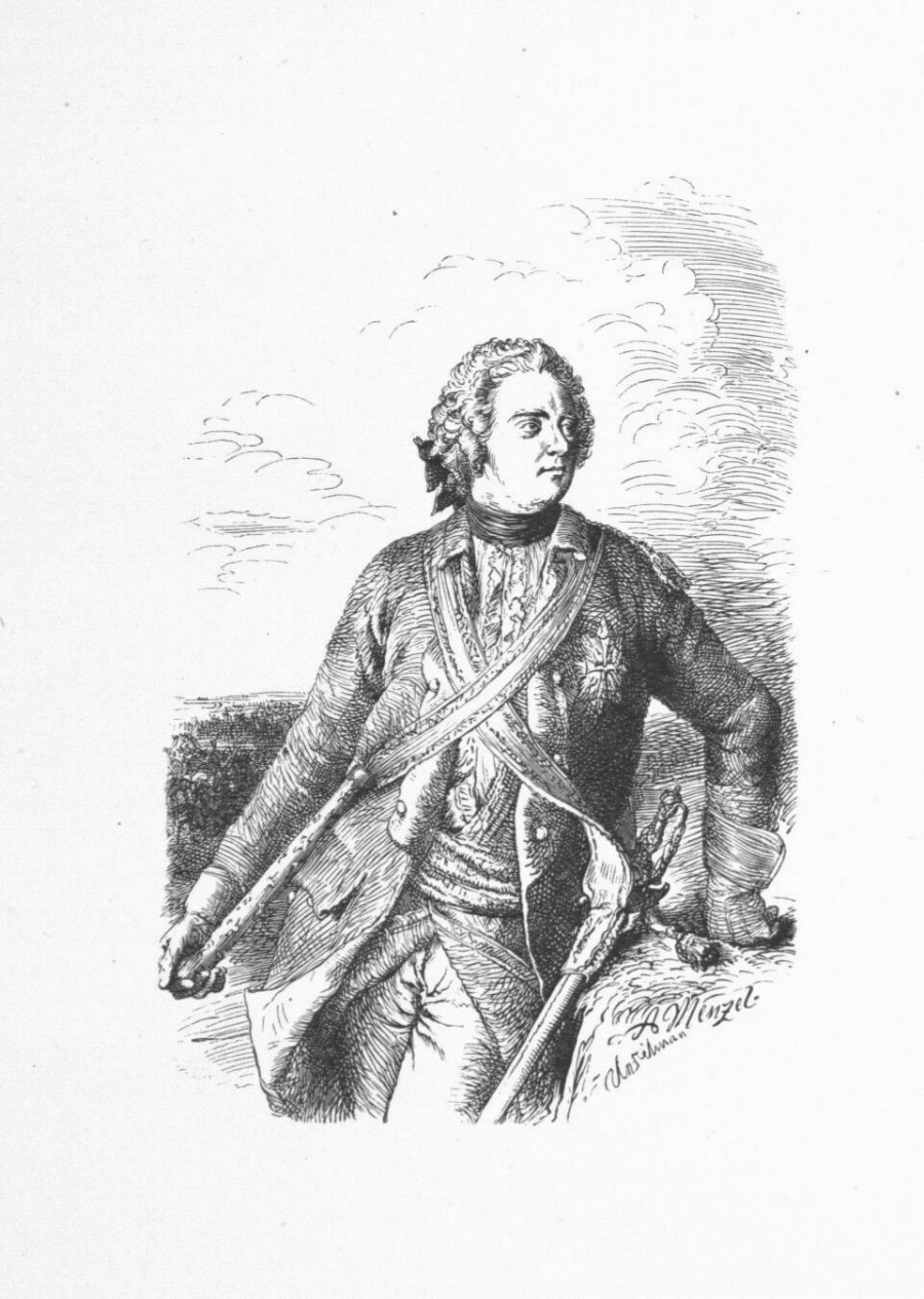 22. Portrait du Marèchal de Saxe. (Ch. XII de l'„Histoire de mon temps“. - Grav. d'Unzelmann.)