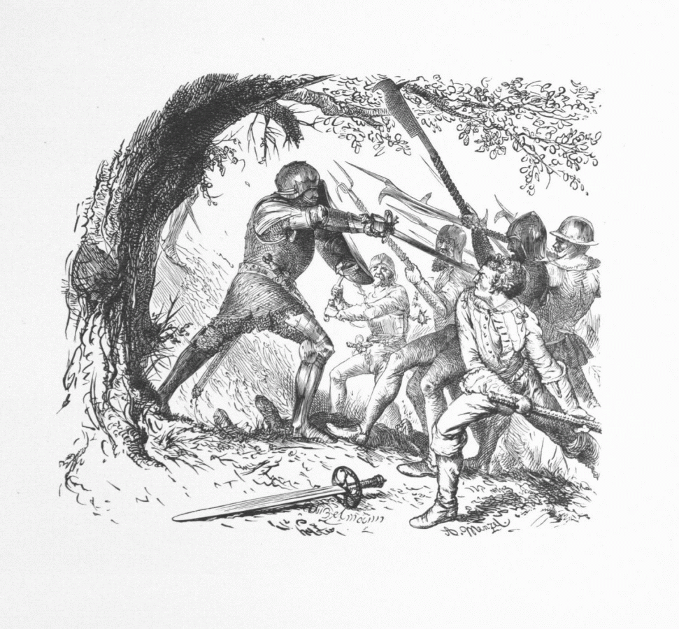 3. Albert l'Achille, combattant contre une troupe de gens armées. (Chapt. III des „Mémoires de Brandebourg“. - Gravure d'Unzelmann.)