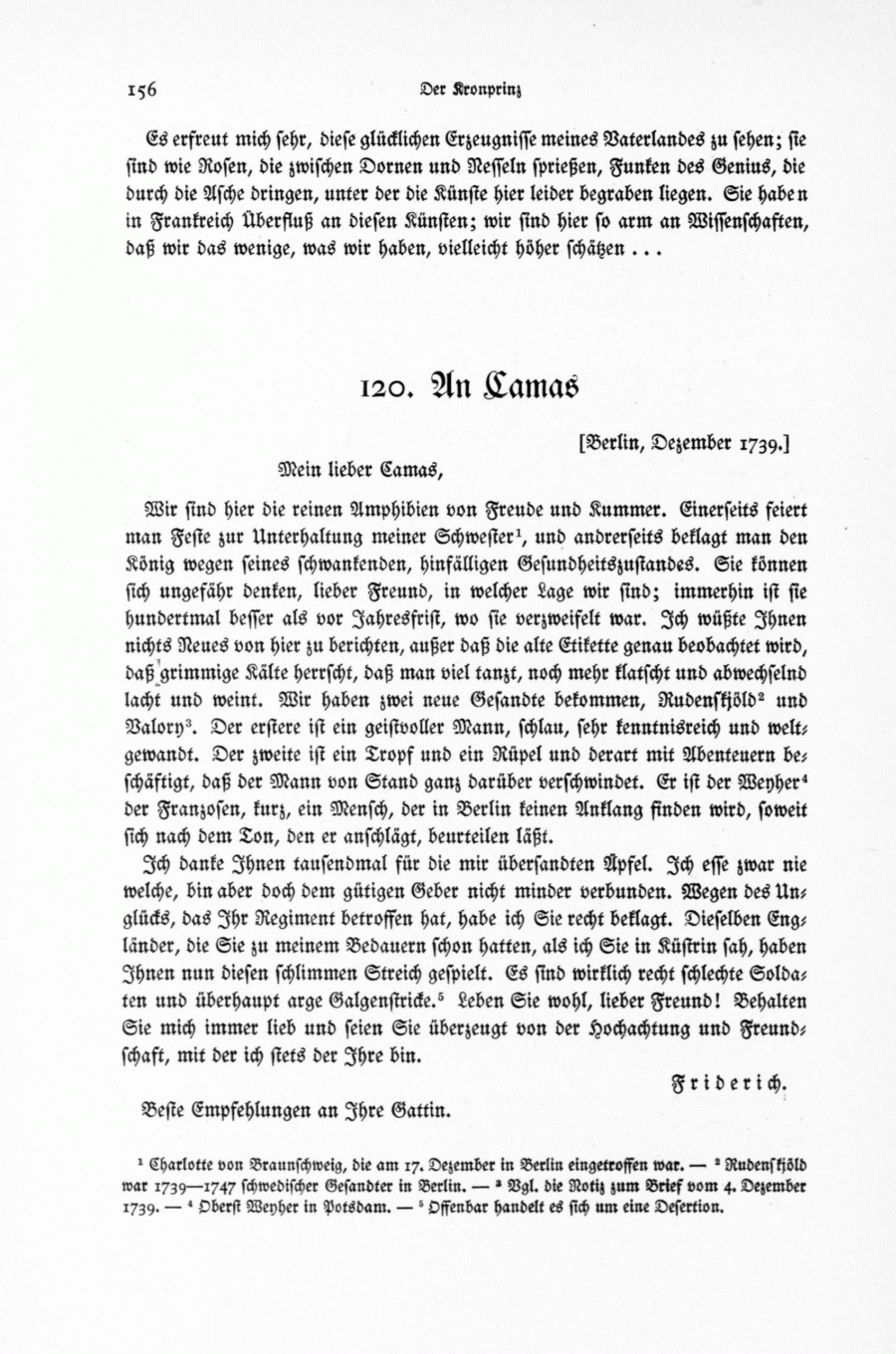 An Oberst von Camas, Dezember 1739