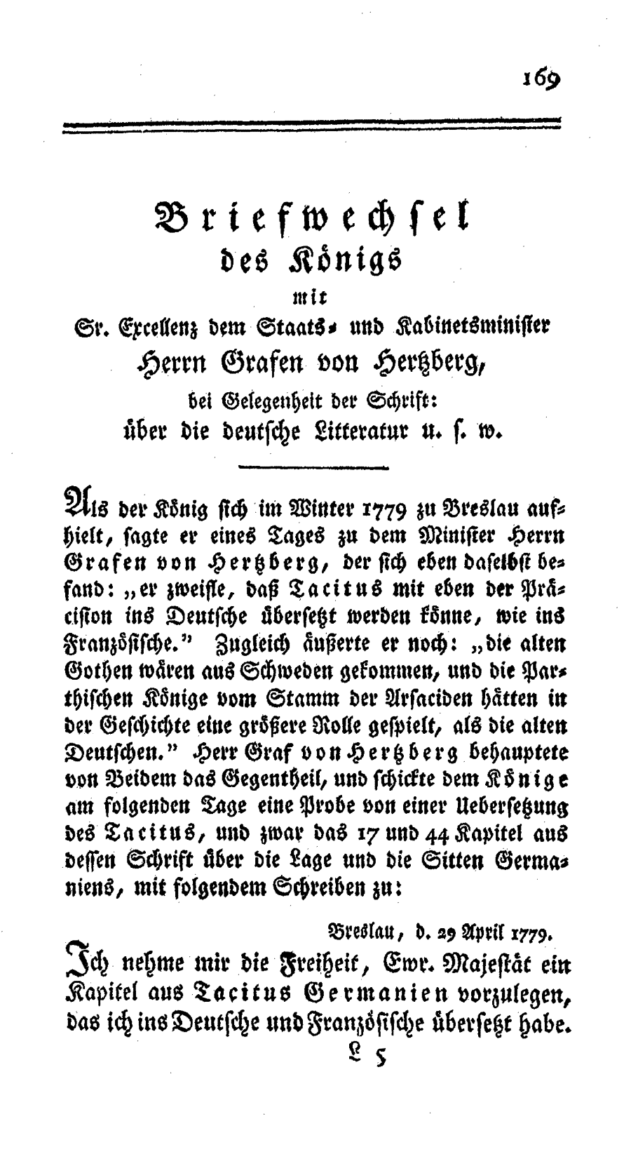 Briefwechsel mit dem Grafen von Hertzberg
