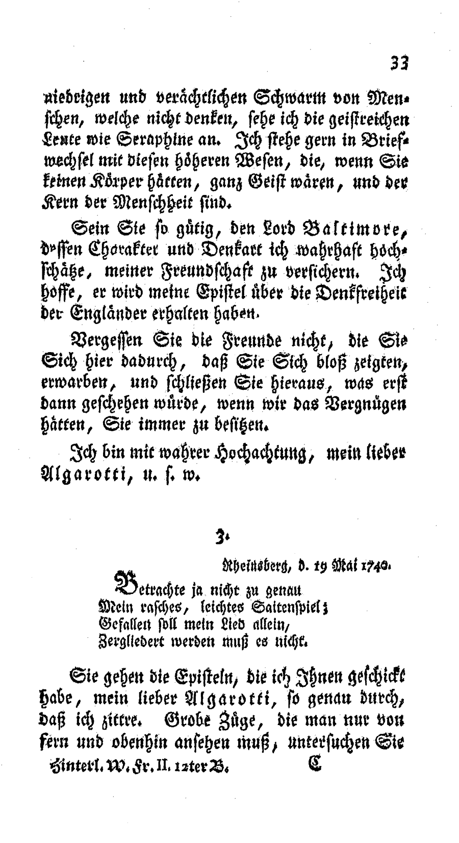 Rheinsberg, d. 19. Mai 1740