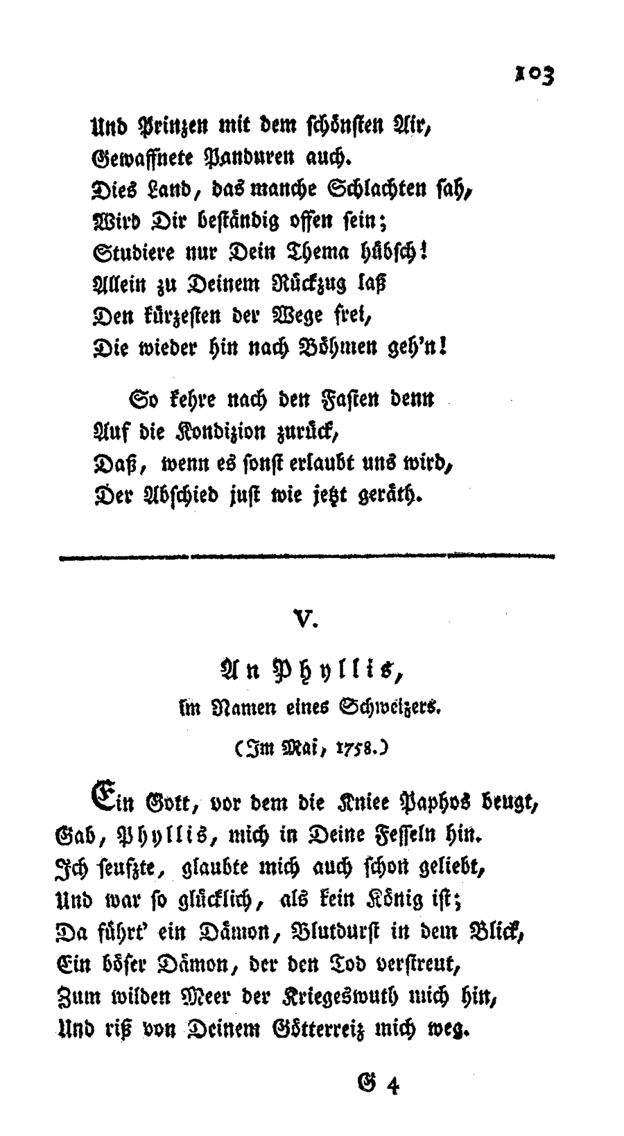 An Phyllis, im Namen eines Schweizers (im Mai 1758)