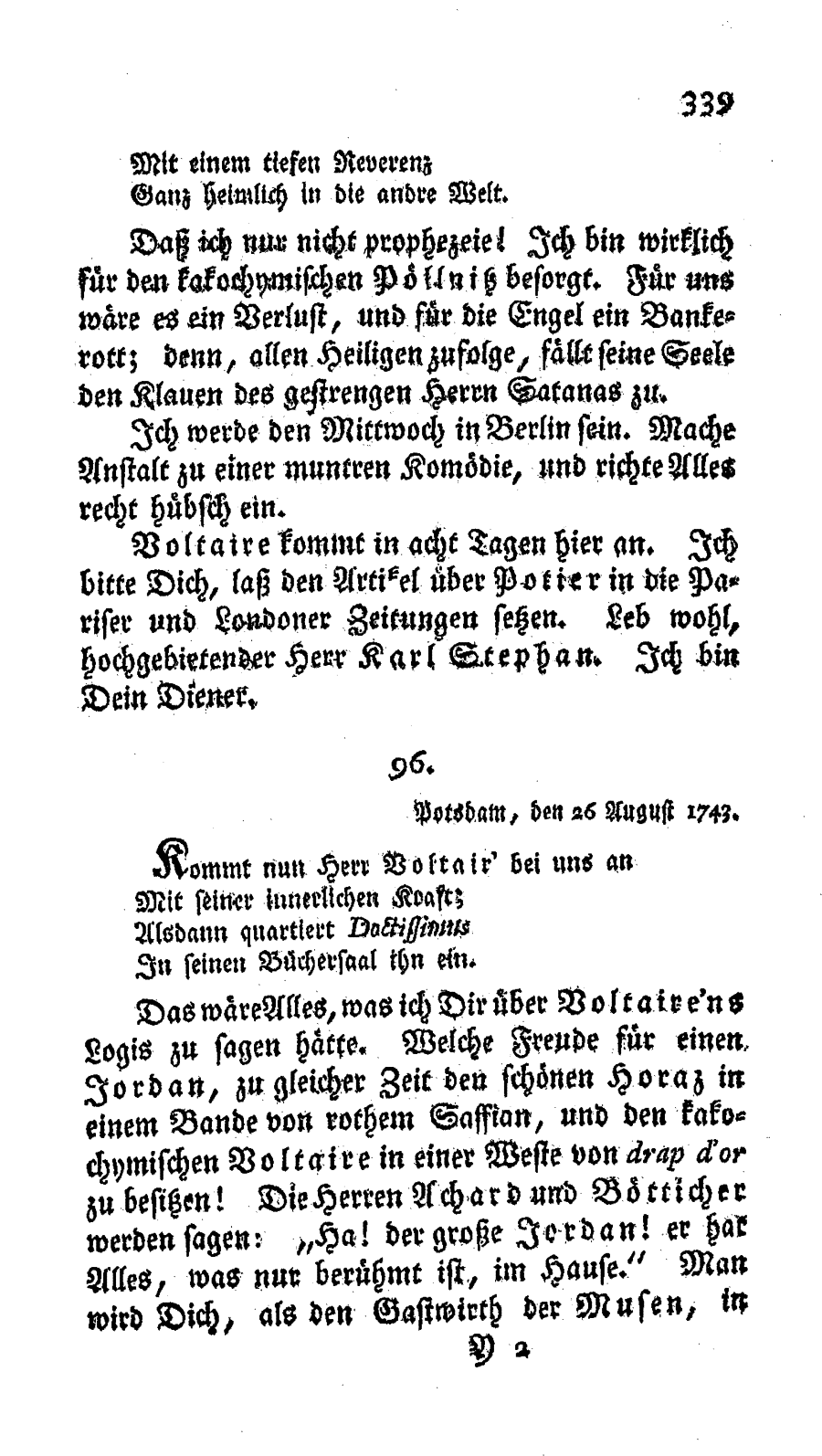 Briefwechsel. Des Königs Briefe an Jordan