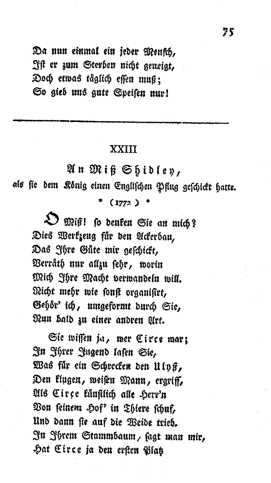 An Miß Shidley, als sie dem König einen Englischen Pflug geschickt hatte (1772)