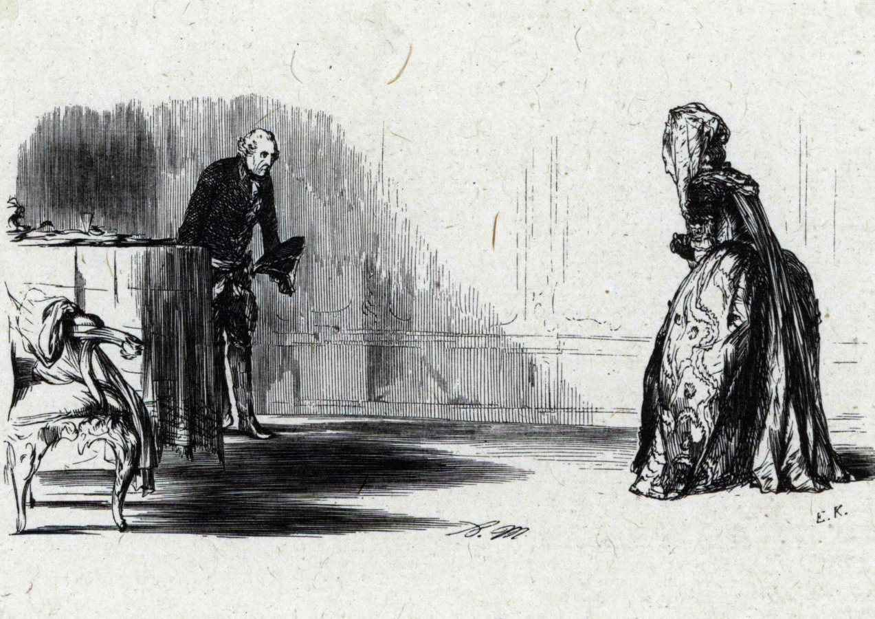 Après un dîner dans le château berlinois, la reine fait ses adieux cérémonieux à Frédéric qui, debout à côté de la table, s'incline.