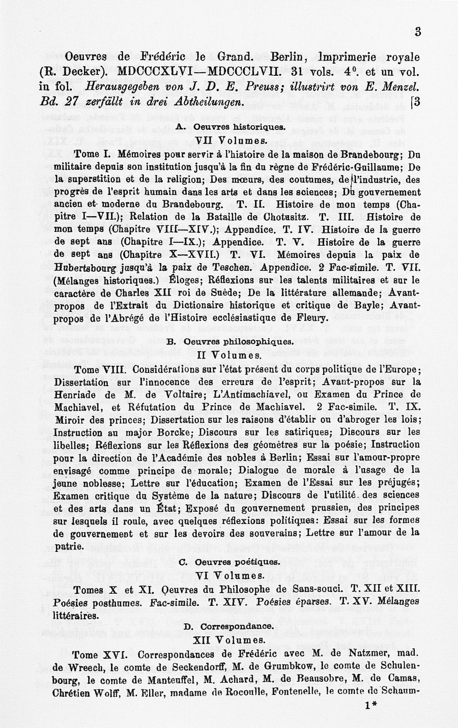 Theil I. Gesammtausgaben der Werke Friedrichs des Grossen