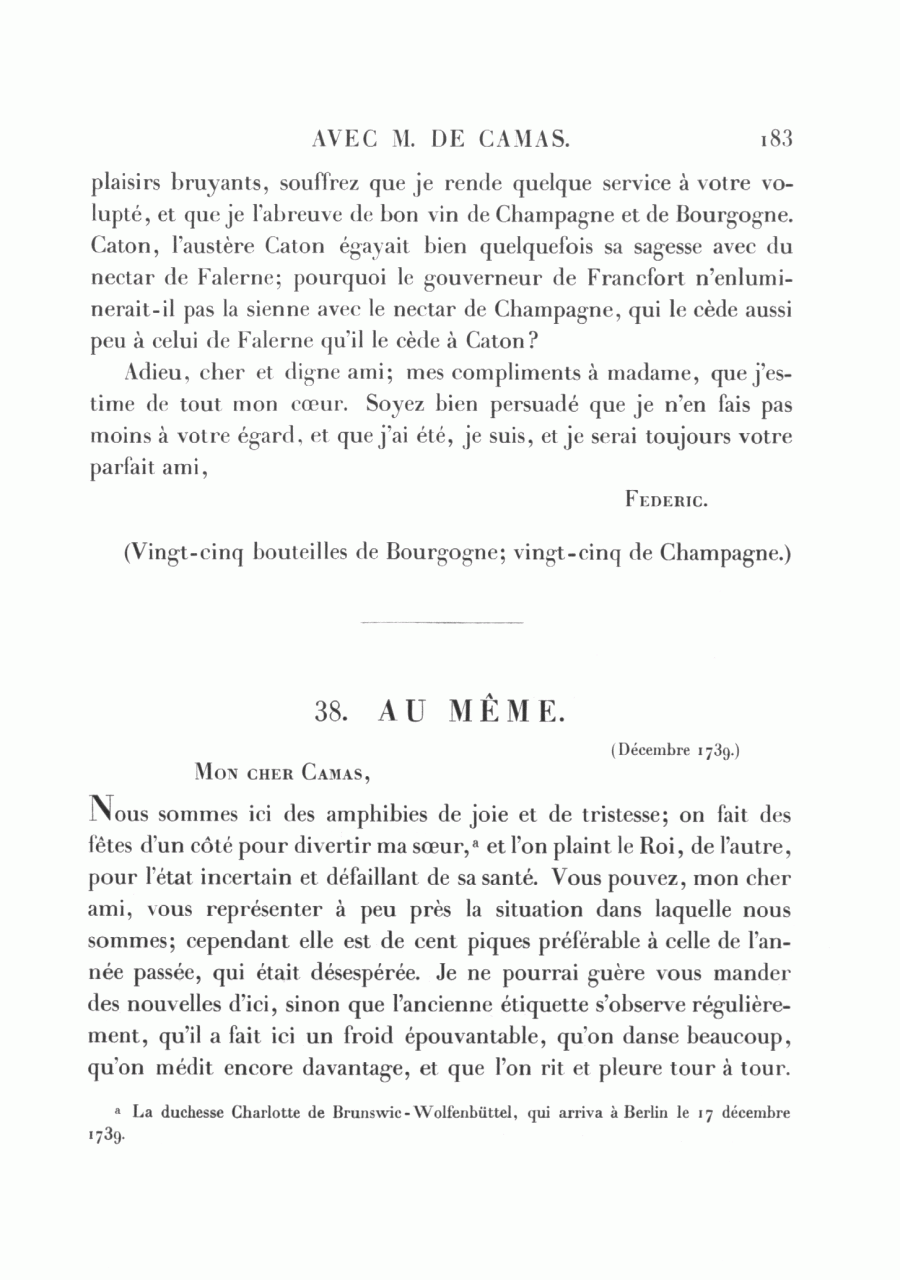 Correspondance de Frédéric avec M. de Camas