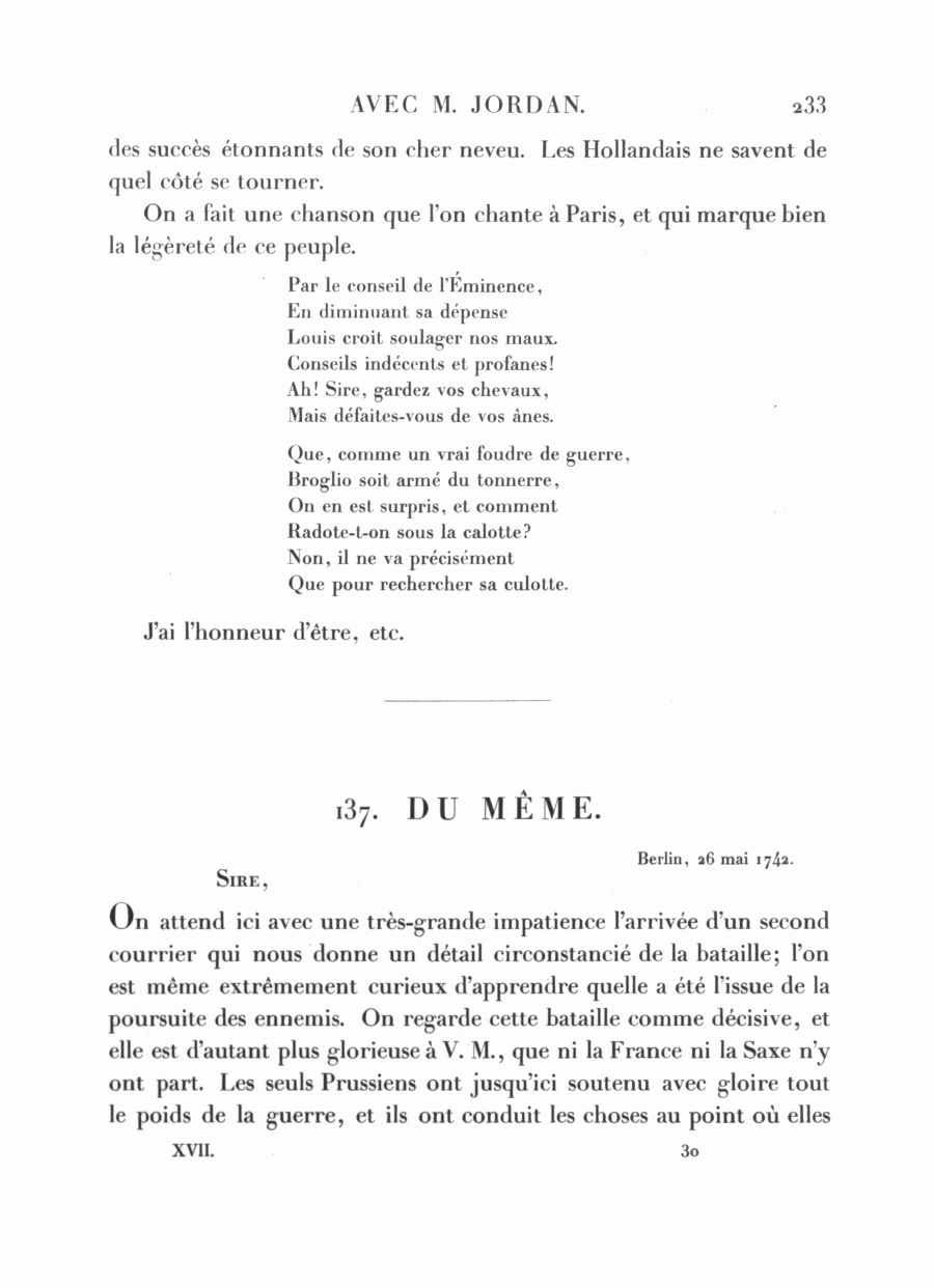 On a fait une chanson que l'on chante à Paris, et qui marque bien la légèreté de ce peuple.