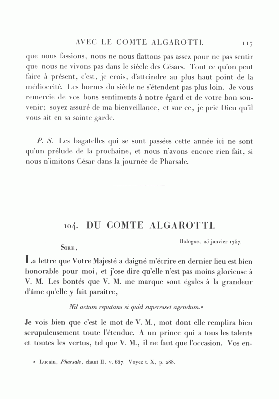 Le comte Algarotti à Frédéric, Bologne, 25 janvier 1757Id: d385_ag509-18_002104000