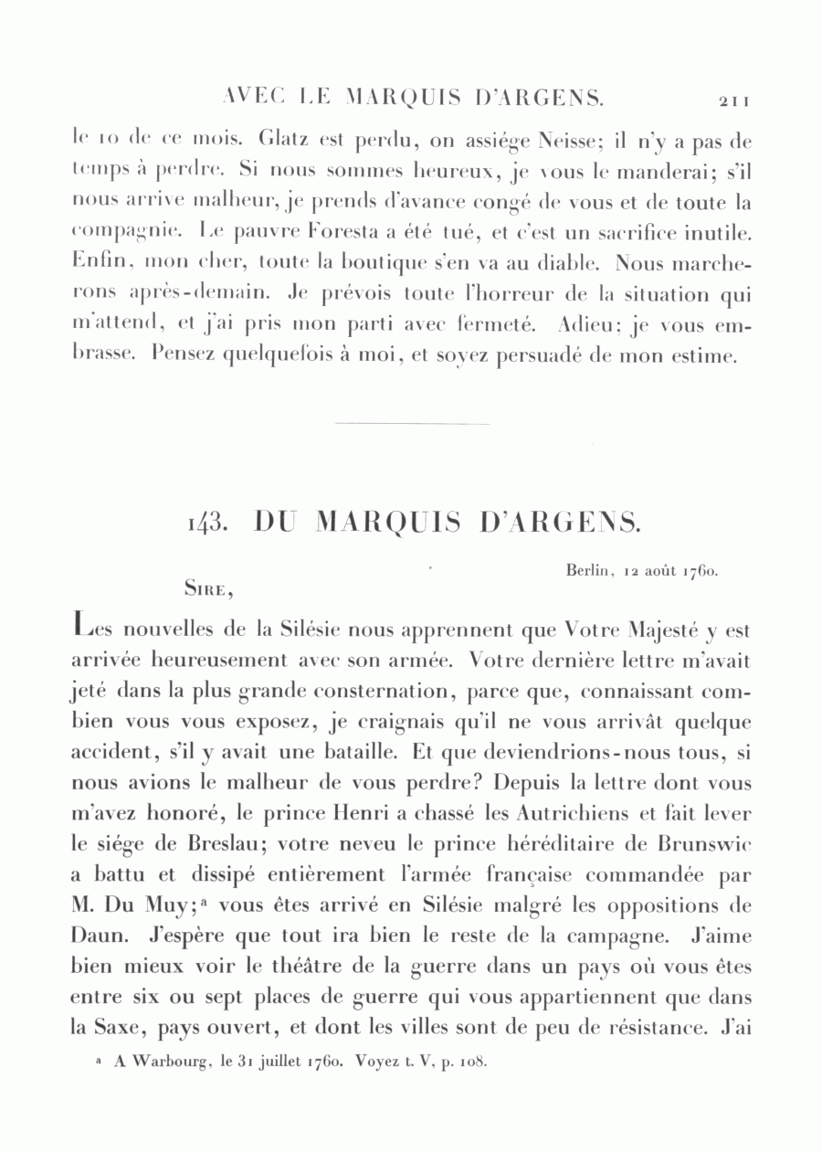 143. DU MARQUIS D'ARGENS.