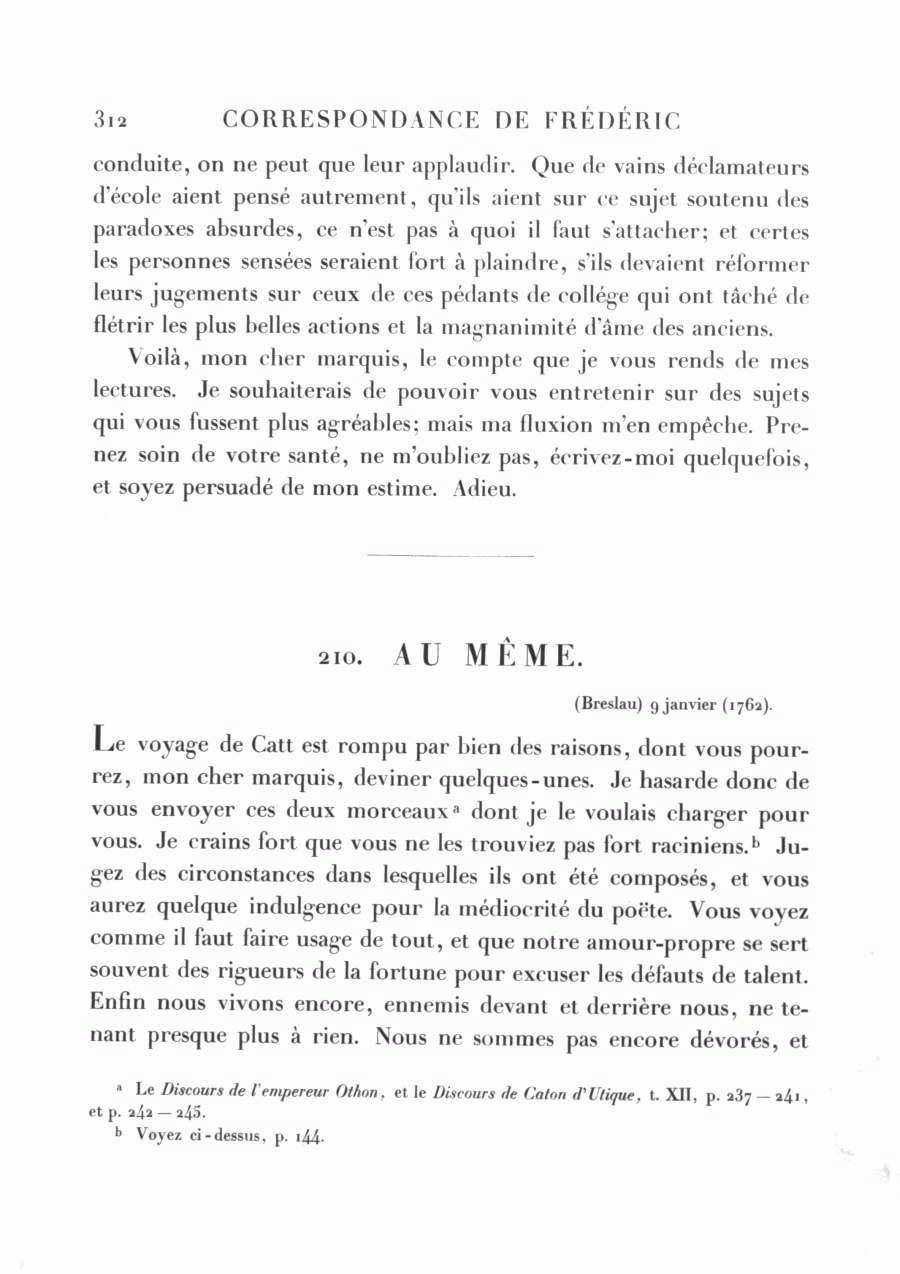 a Le Discours de l'empereur Othon. et le Discours de Caton d'Utique, t. XII, p. 237-241, et p. 242-245.