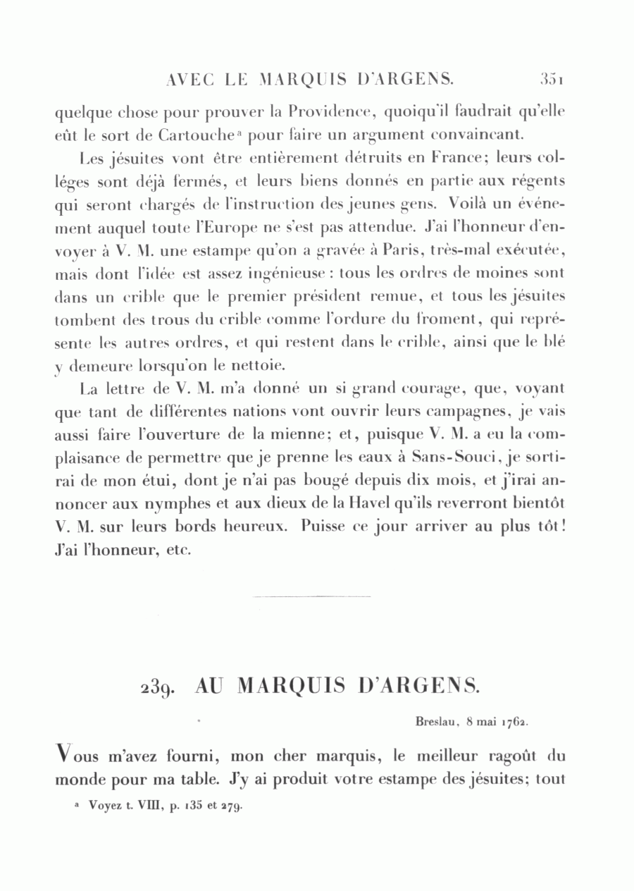 239. AU MARQUIS D'ARGENS.