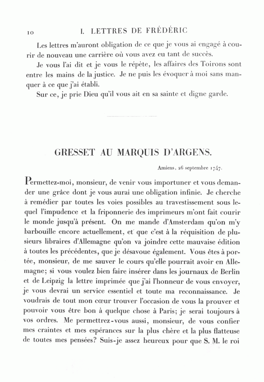 Lettres de Frédéric à Gresset (24 octobre 1740 - 27 septembre 1769)