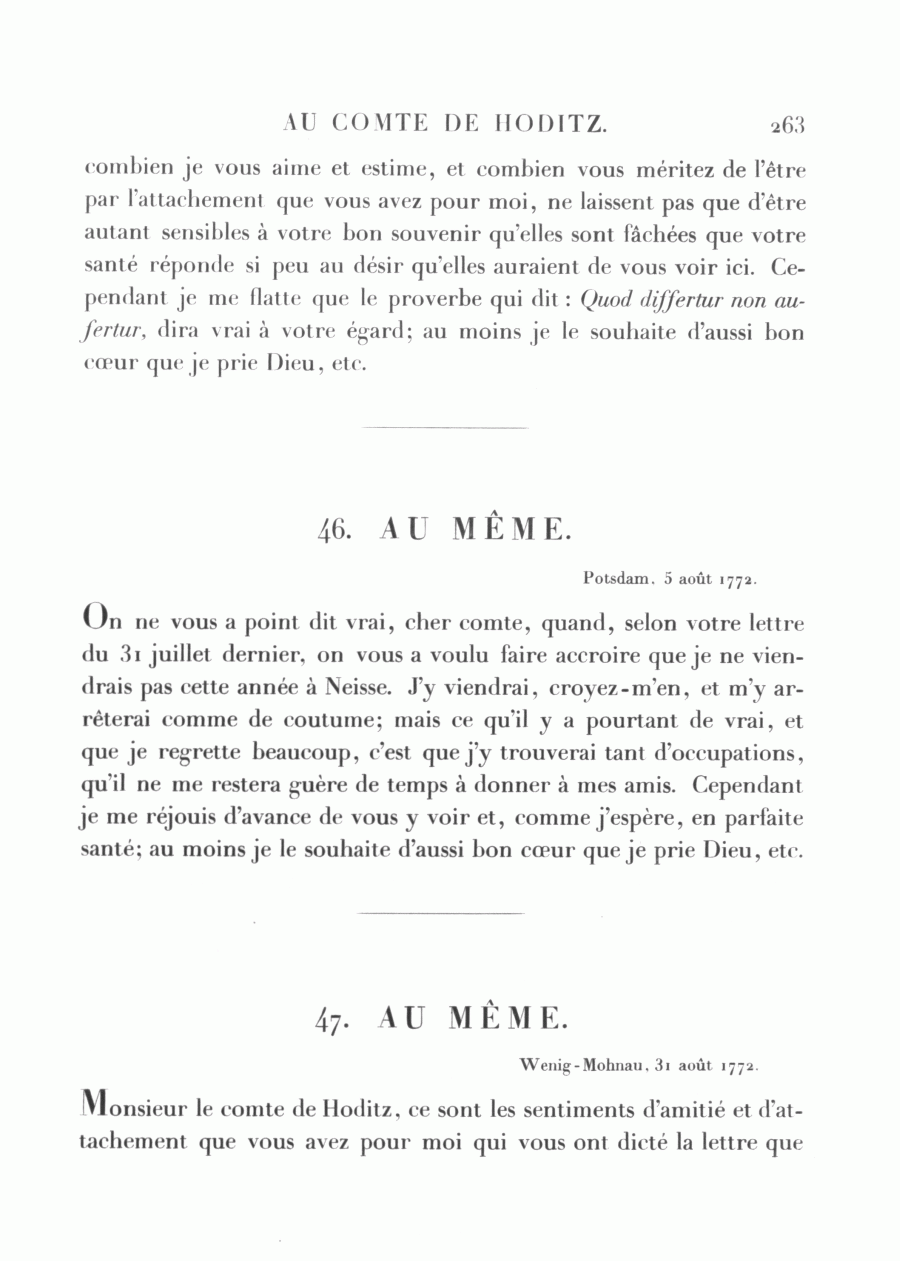 Monsieur le comte de Hoditz, ce sont les sentiments d'amitié et d'attachement que vous avez pour moi qui vous ont dicté la lettre que