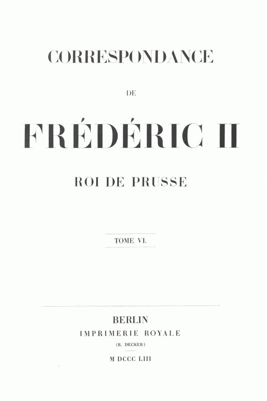 CORRESPONDANCE DE FREDERIC II ROI DE PRUSSE TOME VI. BERLIN IMPRIMERIE ROYALE (R. DECKER) MDCCCLIII