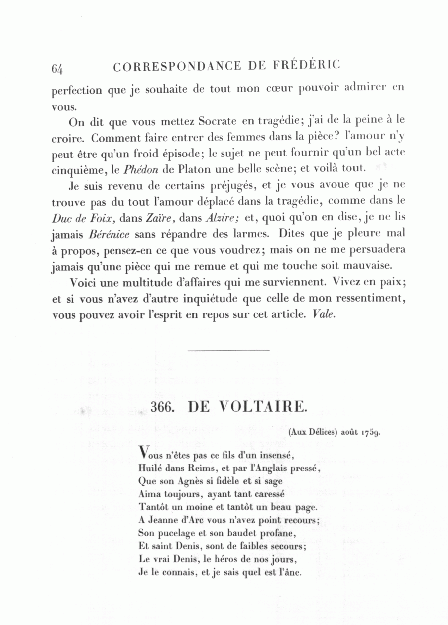 Voltaire à Frédéric, (aux Délices), août 1759Id: d385_ag509-23_001036000