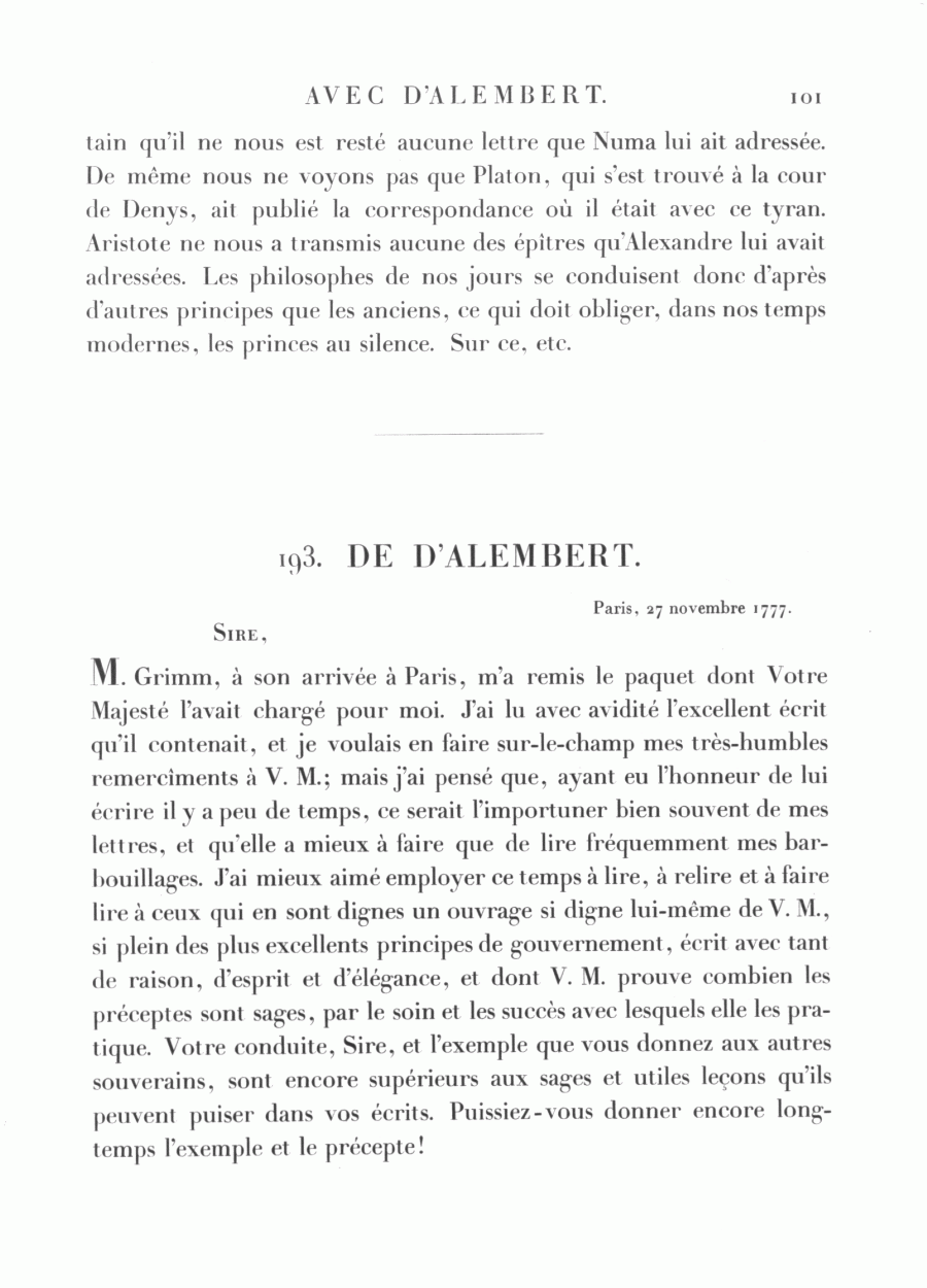 D'Alembert à Frédéric, Paris, 27 novembre 1777Id: d385_ag509-25_002045000