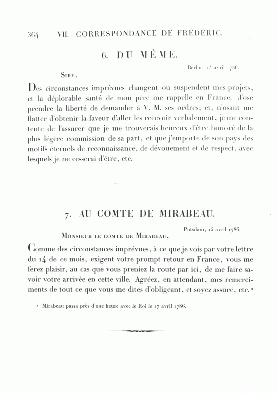 a Mirabeau passa près d'une heure avec le Roi le 17 avril 1786.