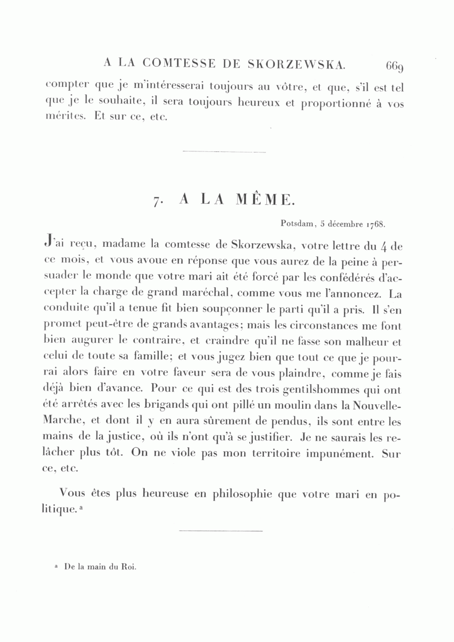 Frédéric à la comtesse de Skorzewska, Potsdam, 5 décembre 1768Id: d385_ag509-25_012013007