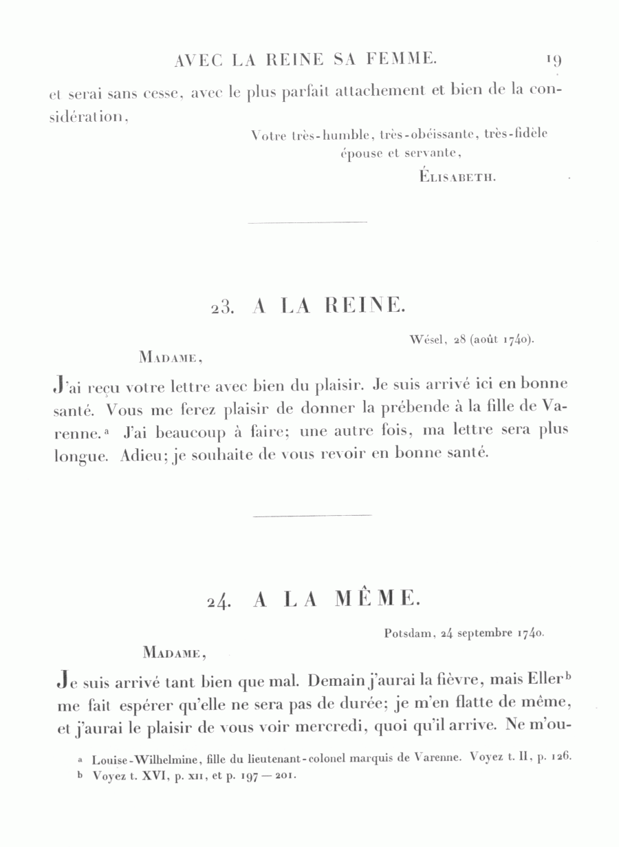 J'ai reçu votre lettre avec bien du plaisir. Je suis arrivé ici en bonne santé. Vous me ferez plaisir de donner la prébende à la fille de Varenne.a J'ai beaucoup à faire; une autre fois, ma lettre sera plus longue. Adieu; je souhaite de vous revoir en bonne santé.