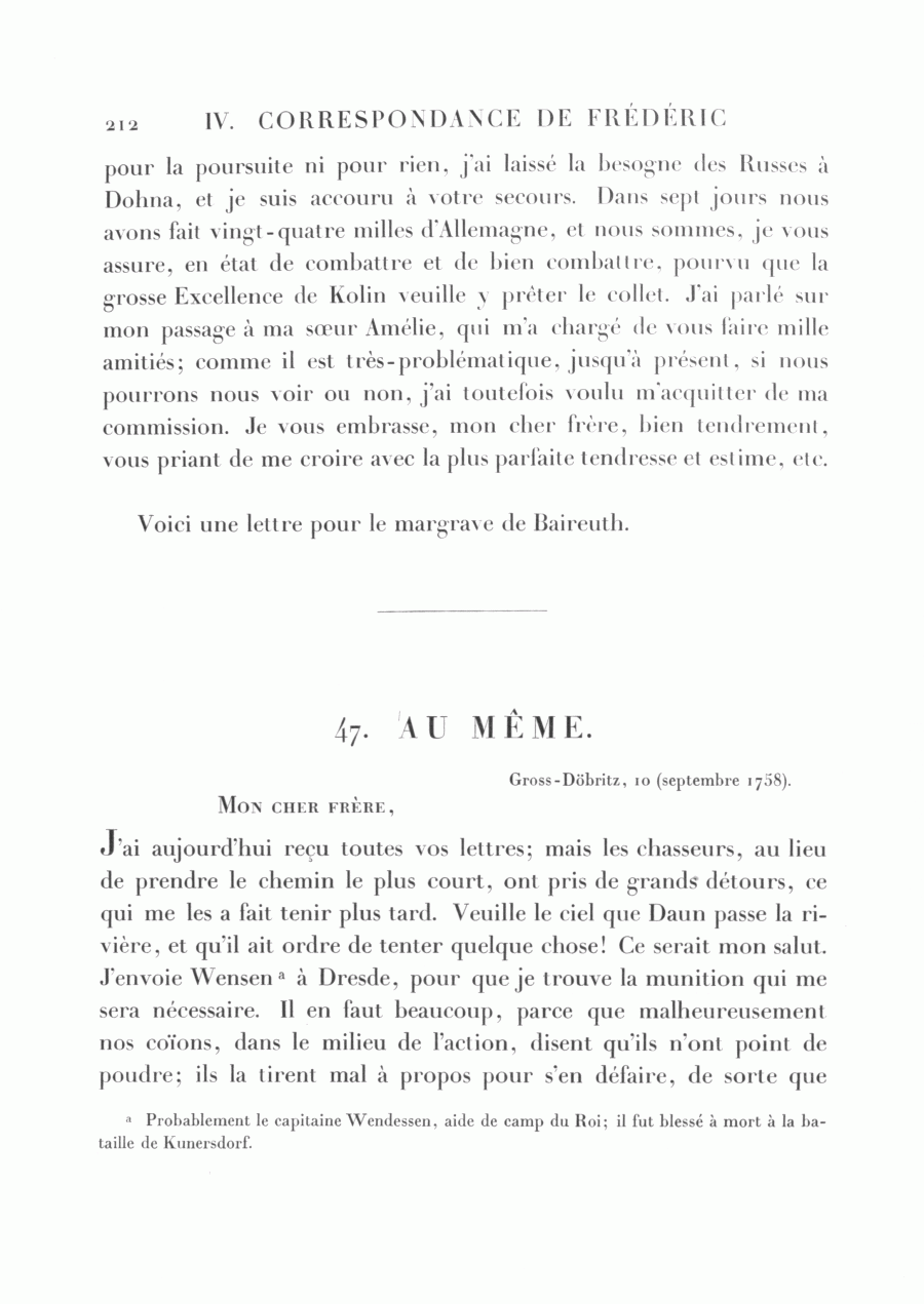 a Probablement le capitaine Wendessen, aide de camp du Roi; il fut blessé à mort à la bataille de Kunersdorf.
