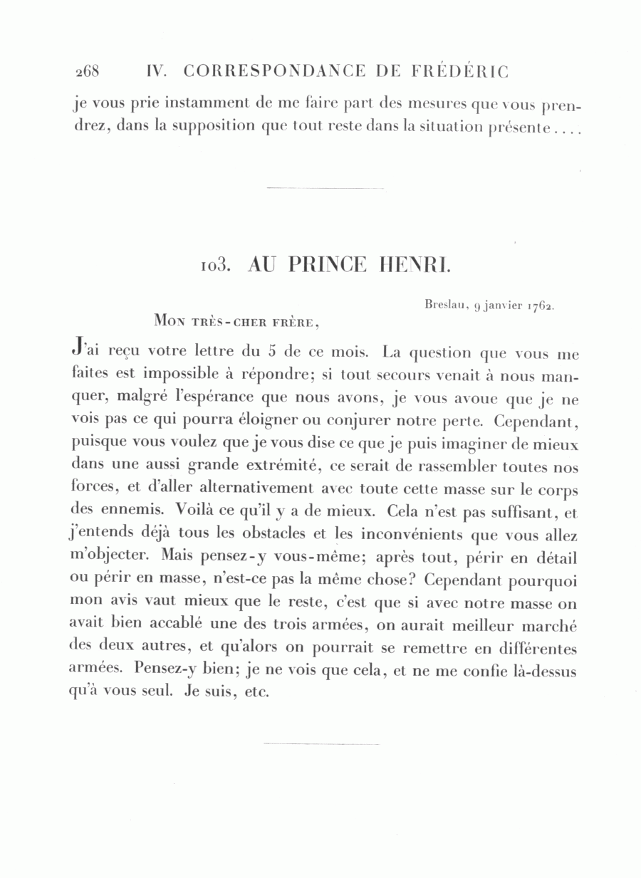 <268> je vous prie instamment de me faire part des mesures que vous prendrez, dans la supposition que tout reste dans la situation présente ....