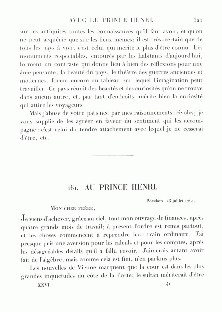 Je viens d'achever, grâce au ciel, tout mon ouvrage de finances, après quatre grands mois de travail; à présent l'ordre est remis partout, et les choses commencent à reprendre leur train ordinaire. J'ai presque pris une aversion pour les calculs et pour les comptes, après les désagréables détails qu'il a fallu revoir. J'aimerais autant avoir fait de l'algèbre; mais comme cela est fini, n'en parlons plus.