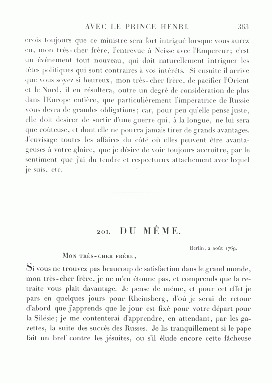 Le prince Henri à Frédéric, Berlin, 2 août 1769Id: d385_ag509-26_005201000