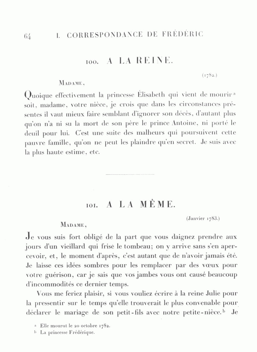 Correspondance de Frédéric avec la Reine Élisabeth sa femme