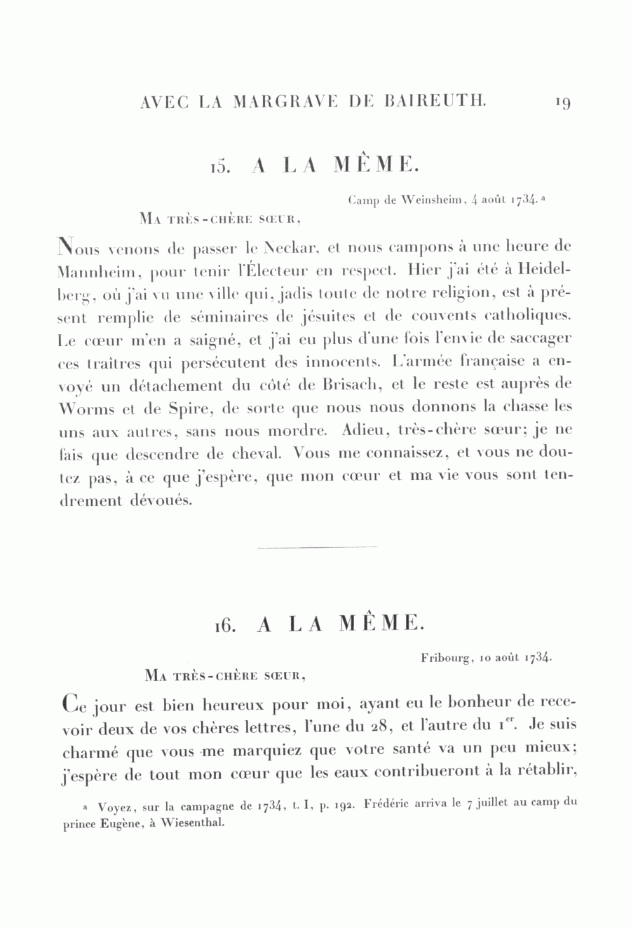a Voyez, sur la campagne de 1734, t. I, p. 192. Frédéric arriva le 7 juillet au camp du prince Eugène, à Wiesenthal.