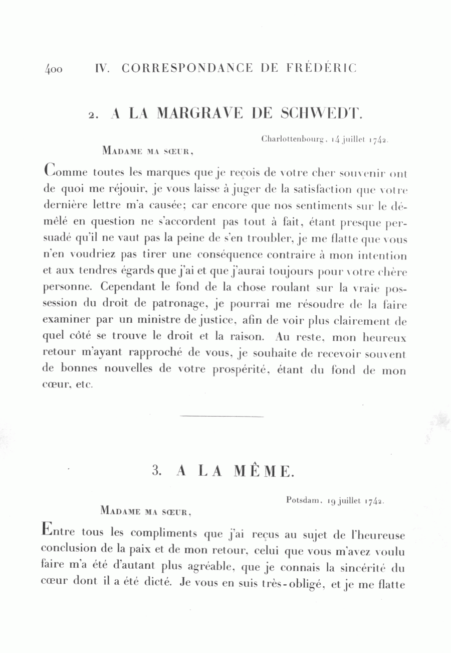 Frédéric à la margrave de Schwedt, Potsdam, 19 juillet 1742Id: d385_ag509-27_1_005003000